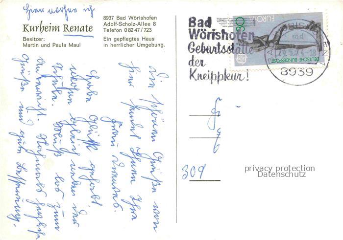 74043210 alte Postkarte BAD WoeRISHOFEN Kurheim Renate Gastraeume Flur postalisch gelaufen Erhaltung siehe scans [WerneD78] KatCode: 11110009778116