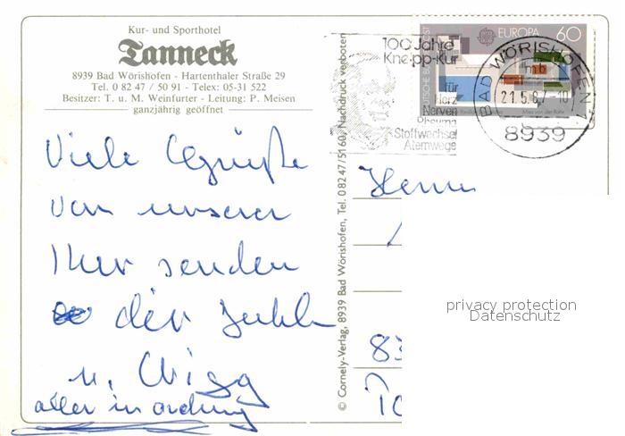 72686243 alte Postkarte Bad Woerishofen Kurhotel Landhaus Tanneck Tennisplatz Hallenbad postalisch gelaufen Erhaltung siehe scans [WerneD78] KatCode: 11110009778116