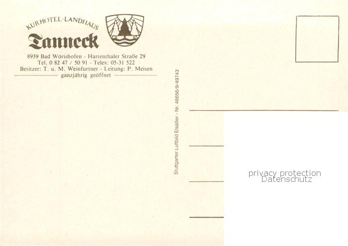 73800954 Bad Woerishofen Kurhotel Landhaus Tanneck postalisch nicht gelaufen Erhaltung siehe scans [WerneD78] KatCode: 11110009778116