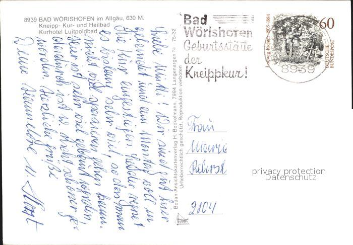 72429979 alte Postkarte Bad Woerishofen Kurhotel Luitpoldbad postalisch gelaufen Erhaltung siehe scans KatCode: 11110009778116