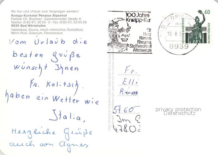 72942649 alte Postkarte Bad Woerishofen Kurhotel Pension Alpenhof postalisch gelaufen Erhaltung siehe scans [LiesaD40] KatCode: 11110009778116