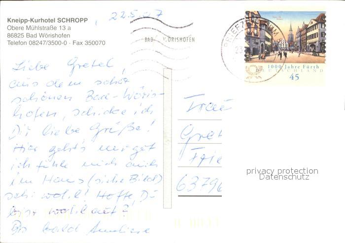 71926657 alte Postkarte Bad Woerishofen Kurhotel Schropp postalisch gelaufen Erhaltung siehe scans KatCode: 11110009778116