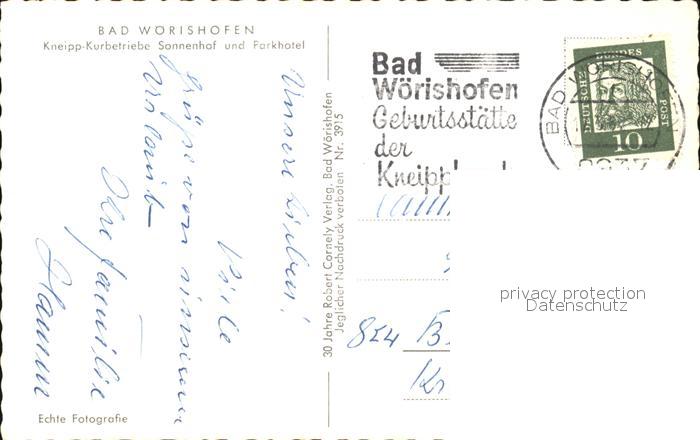 72425153 alte Postkarte Bad Woerishofen Kurhotel Sonnenhof Parkhotel Fliegeraufnahme postalisch gelaufen Erhaltung siehe scans KatCode: 11110009778116