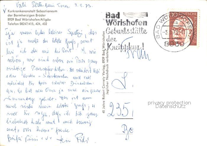 72393782 alte Postkarte Bad Woerishofen Kurkrankenanstalt Sebastianeum postalisch gelaufen Erhaltung siehe scans KatCode: 11110009778116