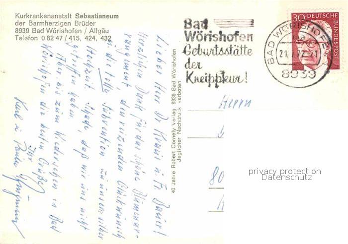 72899563 alte Postkarte Bad Woerishofen Kurkrankenanstalt Sebastianeum der Barmherzigen Brueder Springbrunnen postalisch gelaufen Erhaltung siehe scans [FriedD77] KatCode: 11110009778116