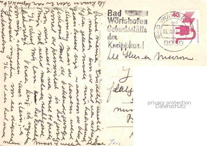 72655110 alte Postkarte Bad Woerishofen Kurpark postalisch gelaufen Erhaltung siehe scans [LiesaD40] KatCode: 11110009778116