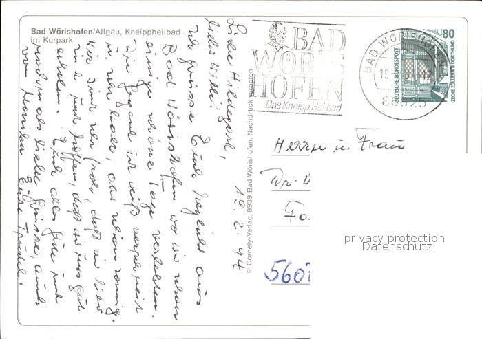 72570529 alte Postkarte Bad Woerishofen Kurpark postalisch gelaufen Erhaltung siehe scans [AndreD76] KatCode: 11110009778116