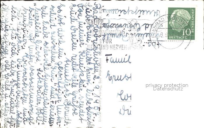 72124624 alte Postkarte Bad Woerishofen Kurpark Musikpavillon Waldsee Wassertretplatz Birkenweg Karpfenteich Kurhaus Leseraum postalisch gelaufen KatCode: 11110009778116