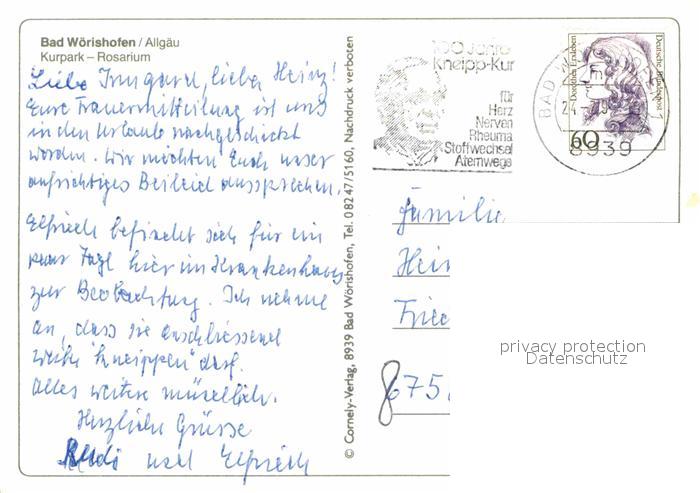 72721024 alte Postkarte Bad Woerishofen Kurpark Rosarium postalisch gelaufen Erhaltung siehe scans [FriedD77] KatCode: 11110009778116