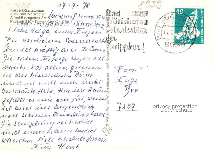 73867589 alte Postkarte Bad Woerishofen Kurpark Sanatorium postalisch gelaufen Erhaltung siehe scans [WerneD78] KatCode: 11110009778116