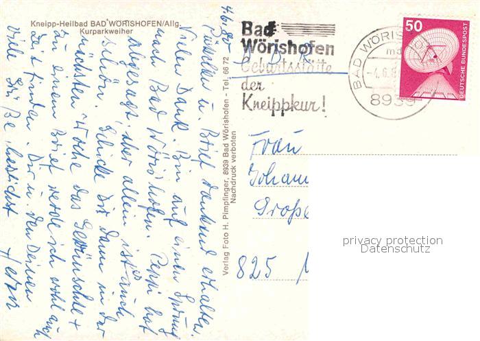 72907307 alte Postkarte Bad Woerishofen Kurparweiher postalisch gelaufen Erhaltung siehe scans [AndreD76] KatCode: 11110009778116