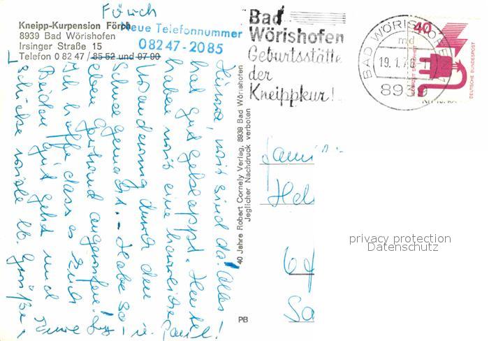 72671319 alte Postkarte Bad Woerishofen Kurpension Foerch postalisch gelaufen Erhaltung siehe scans [NatalD47] KatCode: 11110009778116
