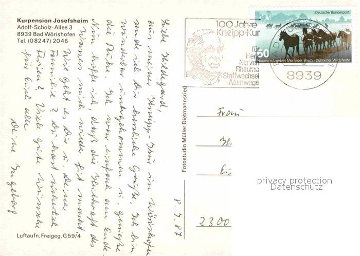 72756540 alte Postkarte Bad Woerishofen Kurpension Josefsheim postalisch gelaufen Erhaltung siehe scans [WerneD78] KatCode: 11110009778116