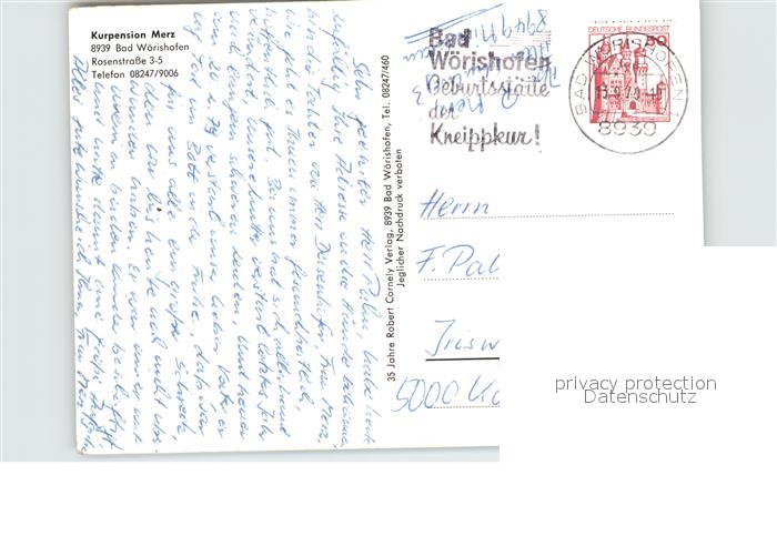 72582659 alte Postkarte Bad Woerishofen Kurpension Merz postalisch gelaufen Erhaltung siehe scans [FriedD77] KatCode: 11110009778116
