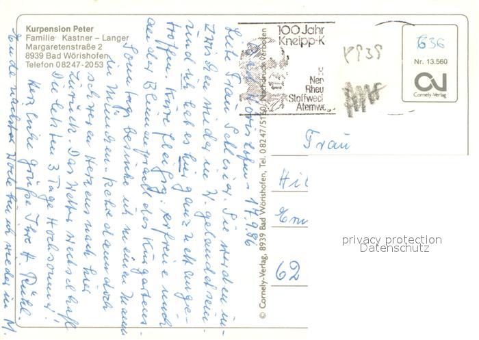 73745883 alte Postkarte Bad Woerishofen Kurpension Peter Gastraum Hallenbad postalisch gelaufen Erhaltung siehe scans [FriedD77] KatCode: 11110009778116
