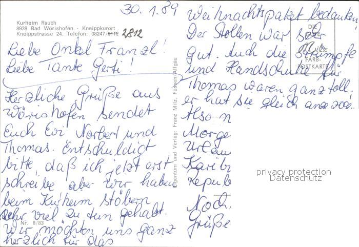 72367045 Bad Woerishofen Kurpension Rauch postalisch nicht gelaufen Erhaltung siehe scans KatCode: 11110009778116