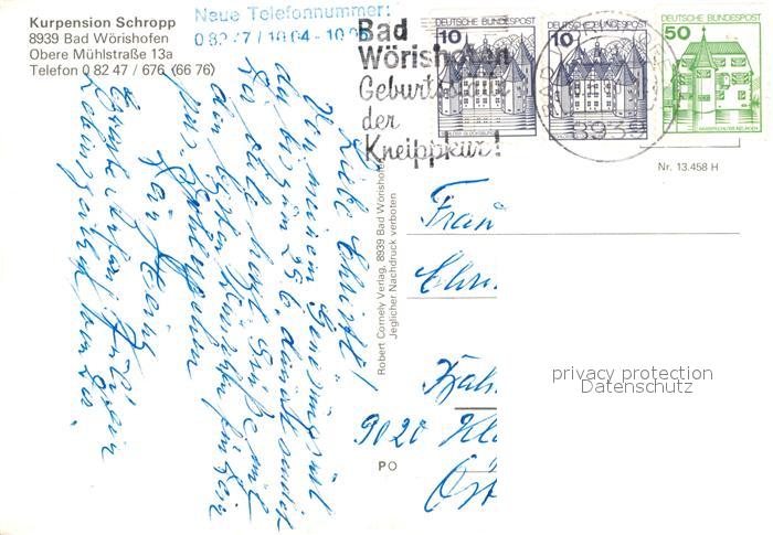 72931534 alte Postkarte Bad Woerishofen Kurpension Schropp postalisch gelaufen Erhaltung siehe scans [KathaD81] KatCode: 11110009778116