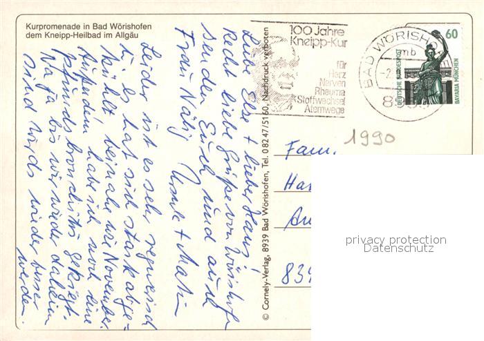 72925610 alte Postkarte Bad Woerishofen Kurpromenade postalisch gelaufen Erhaltung siehe scans [NatalD47] KatCode: 11110009778116
