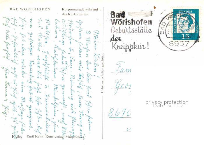 72899979 alte Postkarte Bad Woerishofen Kurpromenade postalisch gelaufen Erhaltung siehe scans [NatalD47] KatCode: 11110009778116