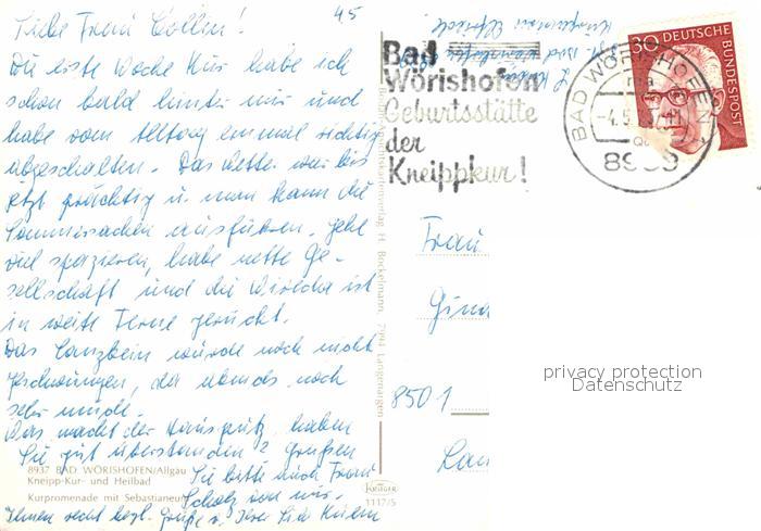 72772444 alte Postkarte Bad Woerishofen Kurpromenade mit Sebastianeum postalisch gelaufen Erhaltung siehe scans [WerneD78] KatCode: 11110009778116