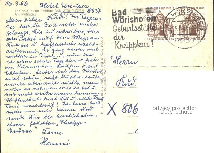 72403026 alte Postkarte Bad Woerishofen Muehlbach postalisch gelaufen Erhaltung siehe scans KatCode: 11110009778116