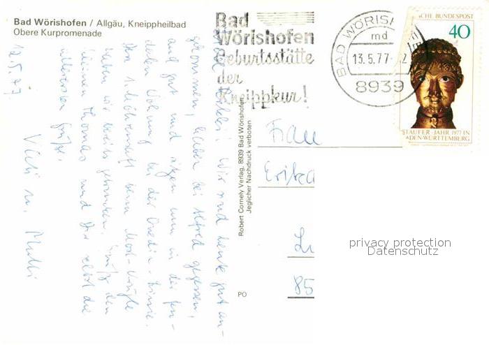 72772447 alte Postkarte Bad Woerishofen Obere Kurpromenade postalisch gelaufen Erhaltung siehe scans [WerneD78] KatCode: 11110009778116