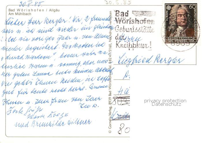 73150929 alte Postkarte Bad Woerishofen Partie am Muehlbach Enten postalisch gelaufen Erhaltung siehe scans [FriedD77] KatCode: 11110009778116