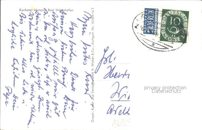 31705877 alte Postkarte Bad Woerishofen Partie beim Hotel Victoria Fliegeraufnahme Bahnpost postalisch gelaufen Erhaltung siehe scans KatCode: 11110009778116