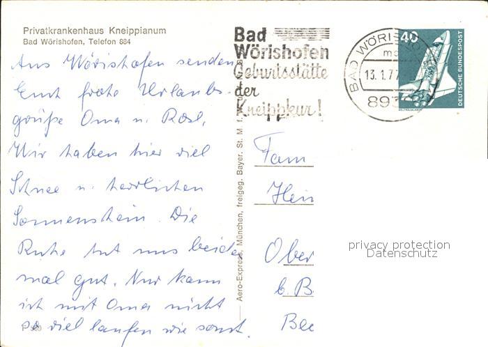 72594666 alte Postkarte Bad Woerishofen Privatkrankenhaus KneippianumFliegeraufnahme postalisch gelaufen Erhaltung siehe scans [WerneD78] KatCode: 11110009778116