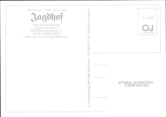 72514997 Bad Woerishofen Restaurant Cafe Tanzbar Jagdhof postalisch nicht gelaufen Erhaltung siehe scans KatCode: 11110009778116