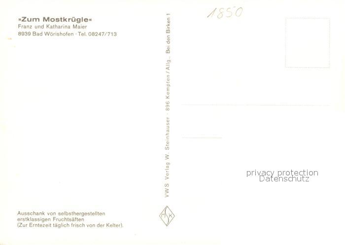 73542905 Bad Woerishofen Restaurant Gaststaette Zum Mostkruegle postalisch nicht gelaufen Erhaltung siehe scans [FriedD77] KatCode: 11110009778116