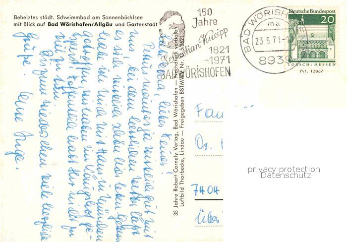 72795696 alte Postkarte Bad Woerishofen Schwimmbad am Sonnenbuechlsee Fliegeraufnahme postalisch gelaufen Erhaltung siehe scans [FriedD77] KatCode: 11110009778116