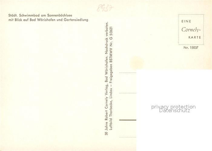 73167279 Bad Woerishofen Schwimmbad am Sonnenbuechlsee Gartensiedlung Fliegeraufnahme Cornely Karte Nr 15037 postalisch nicht gelaufen Erhaltung siehe scans [FriedD77] KatCode: 11110009778116