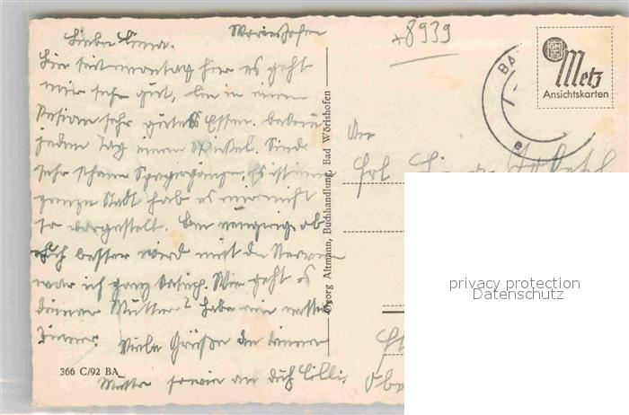 42692482 alte Postkarte Bad Woerishofen Sonnenhof postalisch gelaufen Erhaltung siehe scans [AndreD76] KatCode: 11110009778116
