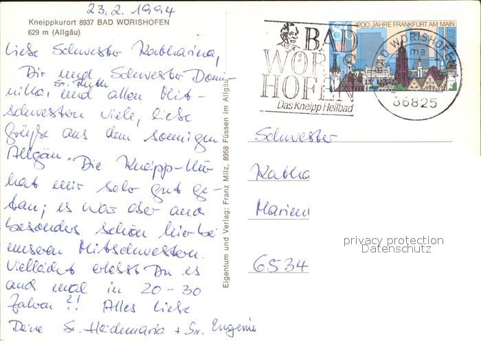 72444315 alte Postkarte Bad Woerishofen Stadtansicht postalisch gelaufen Erhaltung siehe scans KatCode: 11110009778116