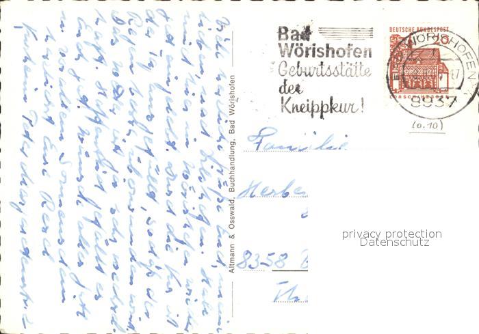72321328 alte Postkarte Bad Woerishofen Stadtblick Kneippdenkmal Kneippstr Kurpark Kurhaus Kneippianum postalisch gelaufen Erhaltung siehe scans KatCode: 11110009778116