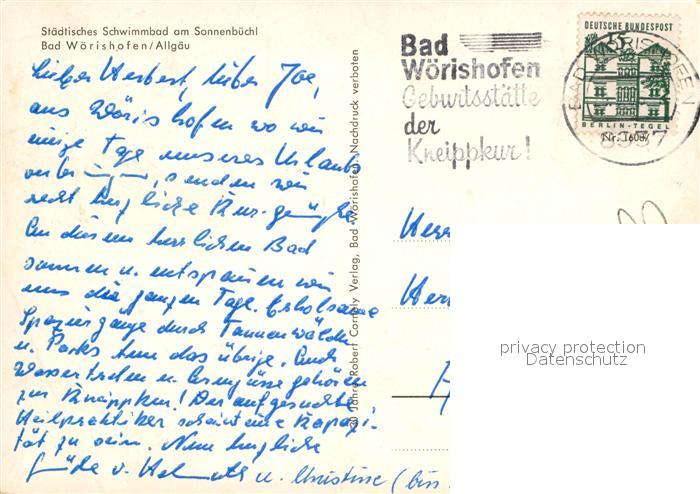 72950870 alte Postkarte Bad Woerishofen Staedt Schwimmbad am Sonnenbuechl postalisch gelaufen Erhaltung siehe scans [WerneD78] KatCode: 11110009778116