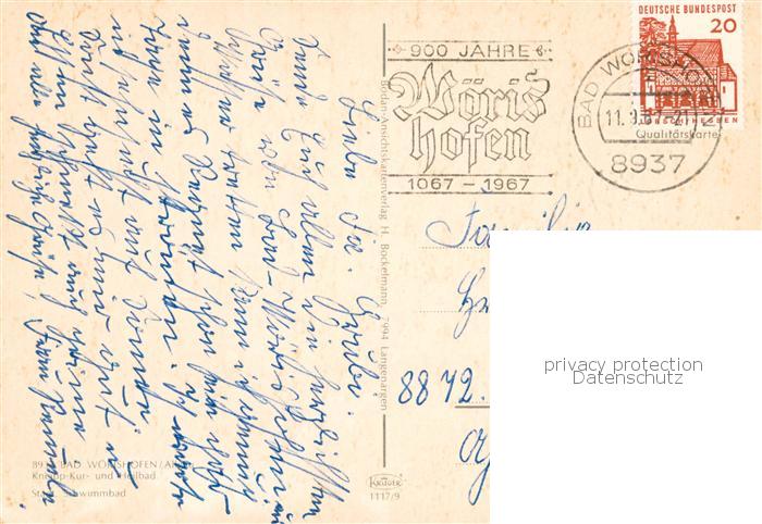 73845622 alte Postkarte Bad Woerishofen Staedt Schwimmbad postalisch gelaufen Erhaltung siehe scans [FriedD77] KatCode: 11110009778116