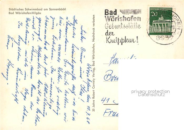 73106565 alte Postkarte Bad Woerishofen Staedtisches Schwimmbad am Sonnenbuechl postalisch gelaufen Erhaltung siehe scans [KathaD81] KatCode: 11110009778116