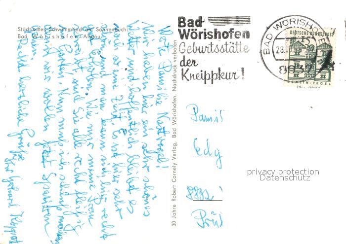 73040853 alte Postkarte Bad Woerishofen Staedtisches Schwimmbad am Sonnenbuechl Freibad postalisch gelaufen Erhaltung siehe scans [FriedD77] KatCode: 11110009778116