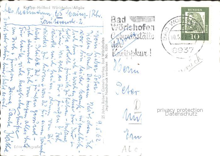 72272087 alte Postkarte Bad Woerishofen Teilansicht Sanatorium Wiesenweg Pfarrei Klosterkirche Kurhaus Kneipp Denkmal Kurpromenade Wassertretplatz Cafe Waldsee postalisch gelaufen Erhaltung siehe scans KatCode: 11110009778116