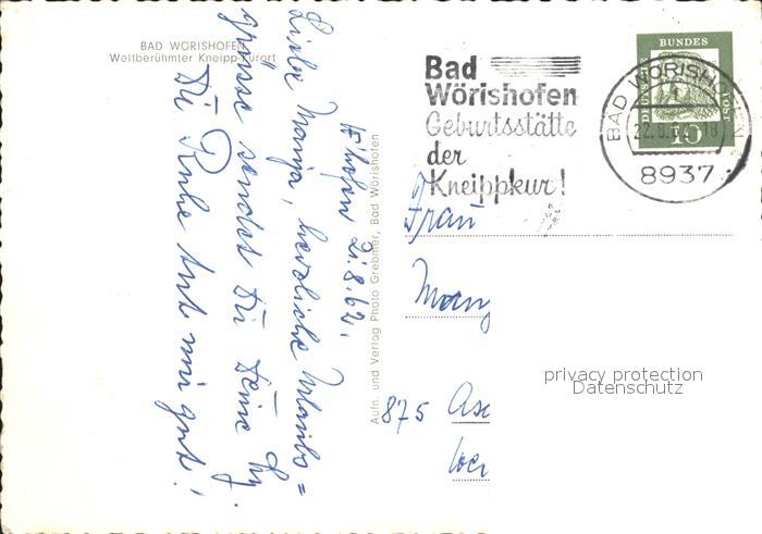 72250183 alte Postkarte Bad Woerishofen Teilansichten Kneippkurort Schwaene Wassertreten Park Kurhaus postalisch gelaufen Erhaltung siehe scans KatCode: 11110009778116