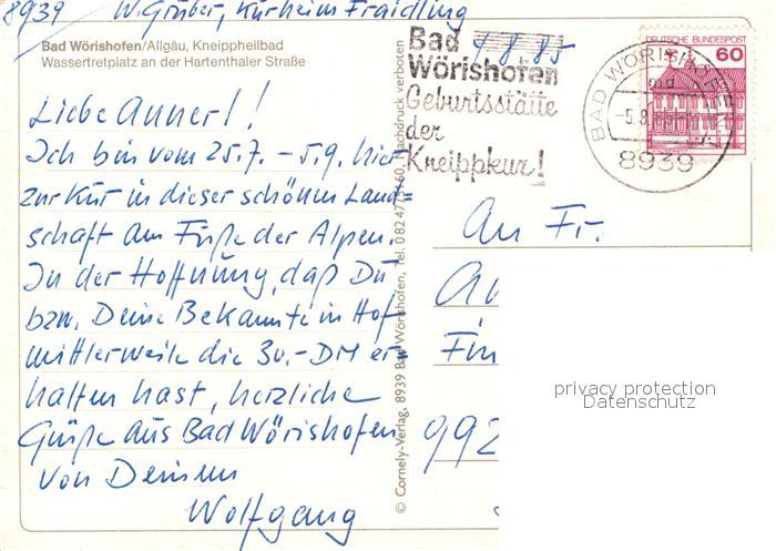 72974873 alte Postkarte Bad Woerishofen Wassertreten Hartenthaler Strasse postalisch gelaufen Erhaltung siehe scans [LiesaD40] KatCode: 11110009778116