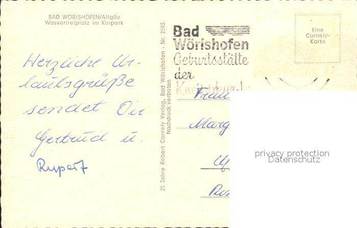 72253195 alte Postkarte Bad Woerishofen Wassertretplatz im Kurpark postalisch gelaufen Erhaltung siehe scans KatCode: 11110009778116