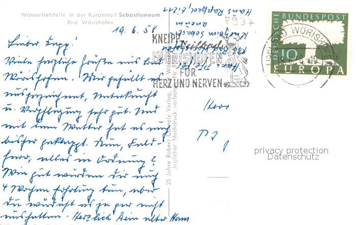 73800781 alte Postkarte Bad Woerishofen Wassertretstelle in der Kuranstalt Sebastianeum postalisch gelaufen Erhaltung siehe scans [WerneD78] KatCode: 11110009778116
