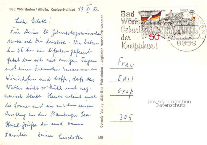 72907328 alte Postkarte Bad Woerishofen Wassertretstelle Kneipp Denkmal Fussgaengerzone postalisch gelaufen Erhaltung siehe scans [AndreD76] KatCode: 11110009778116