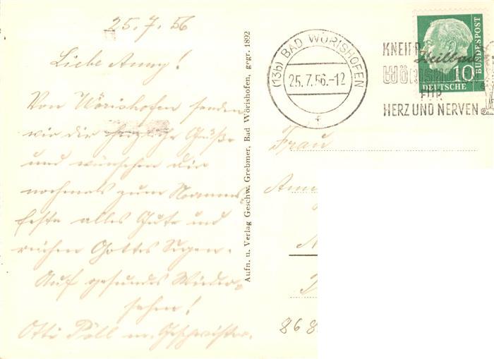 73875124 alte Postkarte Bad Woerishofen Weg zum Waldsee Baumbluete postalisch gelaufen Erhaltung siehe scans [FriedD77] KatCode: 11110009778116
