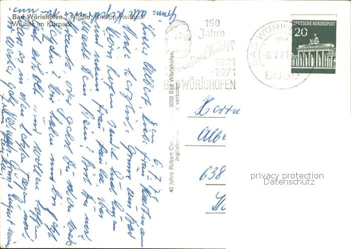 72416332 alte Postkarte Bad Woerishofen Weiher im Kurpark postalisch gelaufen Erhaltung siehe scans KatCode: 11110009778116