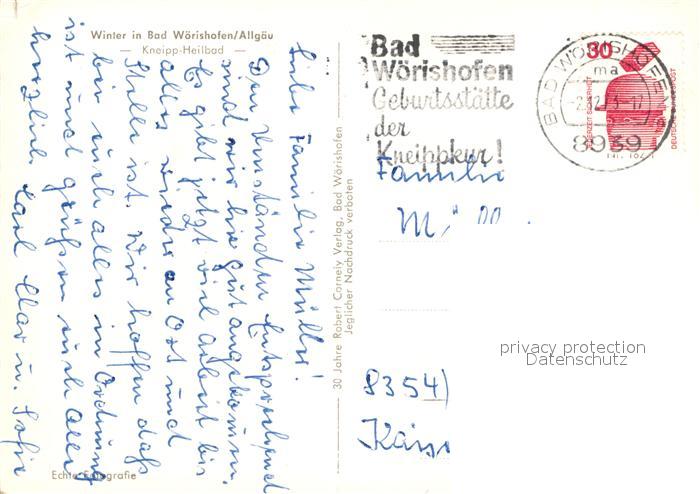 72937376 alte Postkarte Bad Woerishofen Winterlandschaft Kneipp Heilbad postalisch gelaufen Erhaltung siehe scans [FriedD77] KatCode: 11110009778116