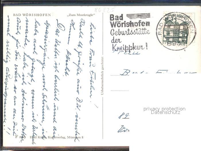 72151185 alte Postkarte Bad Woerishofen Zum Mostkruegle postalisch gelaufen KatCode: 11110009778116